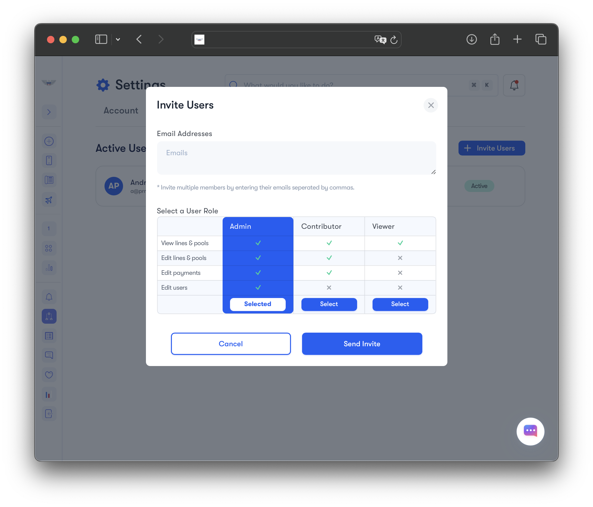 В разделе Настройки можно добавить пользователей и задать им права доступа